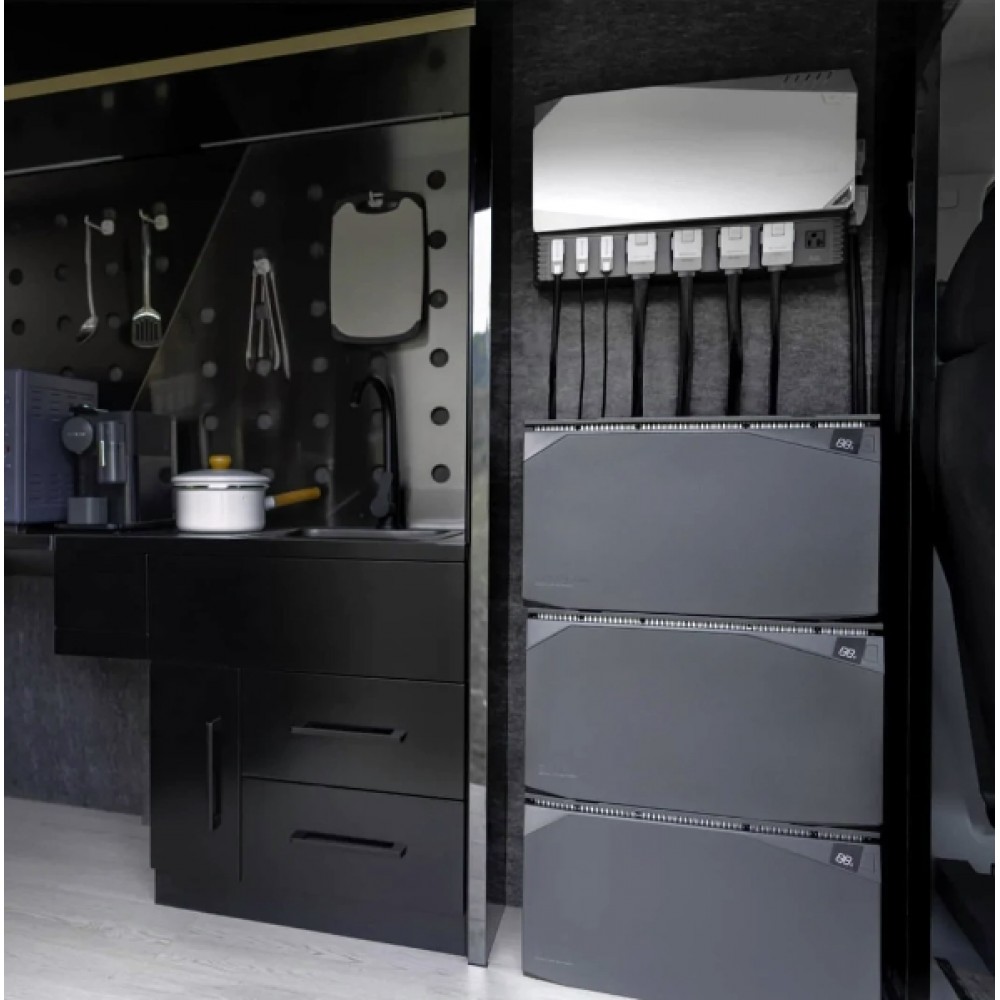 15kWh Güç Kiti ile, enerji sınırlaması olmadan karavanınızın veya şebekeden bağımsız evinizin keyfini çıkarın.Kolay Kurulum: Entegre EcoFlow Power Hub, kitinizi piyasadaki diğer tüm güç çözümlerinden daha hızlı genişletmenize ve özelleştirmenize olanak tanıyan basit bir tak ve çalıştır tasarımına sahiptir.Yerden Tasarruf Edin: EcoFlow Power Hub, iki MPPT solar şarj kontrol cihazını, MPPT’li bir pil şarj cihazını, bir DC-DC düşürücü dönüştürücüyü ve bir inverter şarj cihazını birleştirir. Daha az modül ve daha ince kablo ile bu 48V sistem, yerden ve kurulum zahmetinden tasarruf etmenizi sağlar.İstediğiniz Şekilde Şarj Edin: EcoFlow Güç Kitleri, birden fazla şarj yöntemini destekler. Bol miktarda güneş enerjisi alın, alternatörünüzü kullanın, kıyı gücünü takın ve hatta acil şarj için bir EcoFlow Akıllı Jeneratör kullanın.