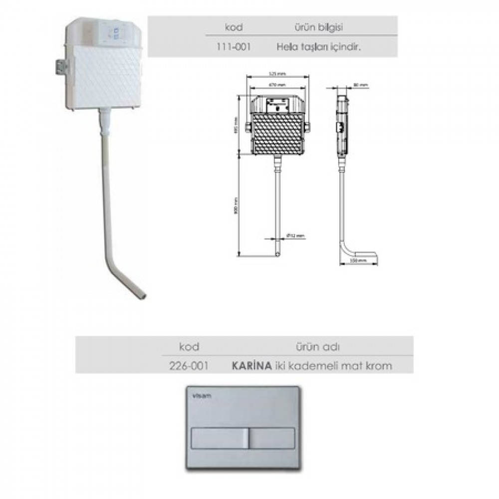 Visam Slim 80 Gömme Rezervuar İki Kademeli Boşaltma Grubu …